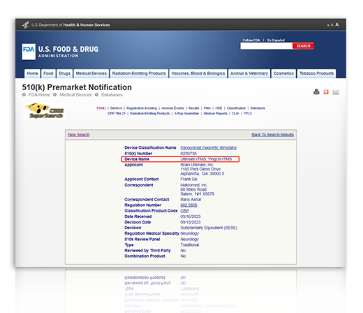 英智TMS成為首個(gè)國產(chǎn)經(jīng)顱磁獲批FDA認(rèn)證。